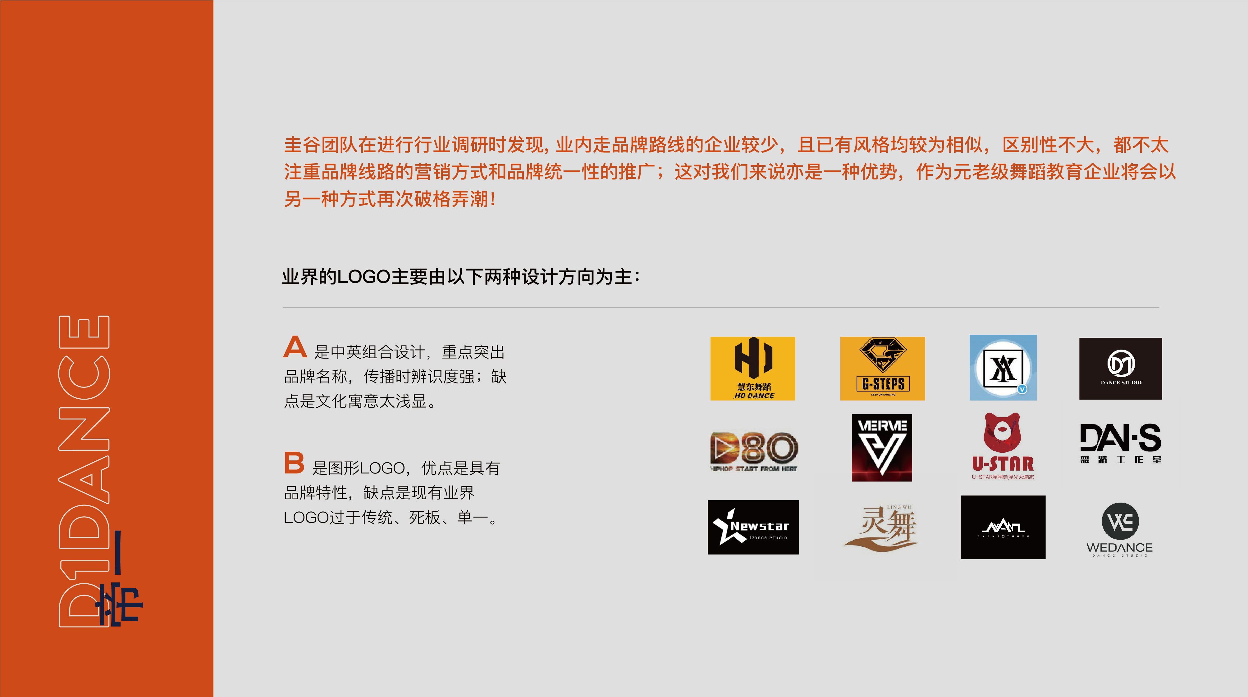 圭谷團隊在進行行業(yè)調(diào)研時發(fā)現(xiàn), 業(yè)內(nèi)走品牌路線的企業(yè)較少,且已有風格均較為相似,區(qū)別性不大,都不太注重品牌線路的營銷方式和品牌統(tǒng)一性的推廣;這對我們來說亦是一種機會,帝一作為元老級舞蹈教育企業(yè)將會以另一種方式再次破格弄潮!
