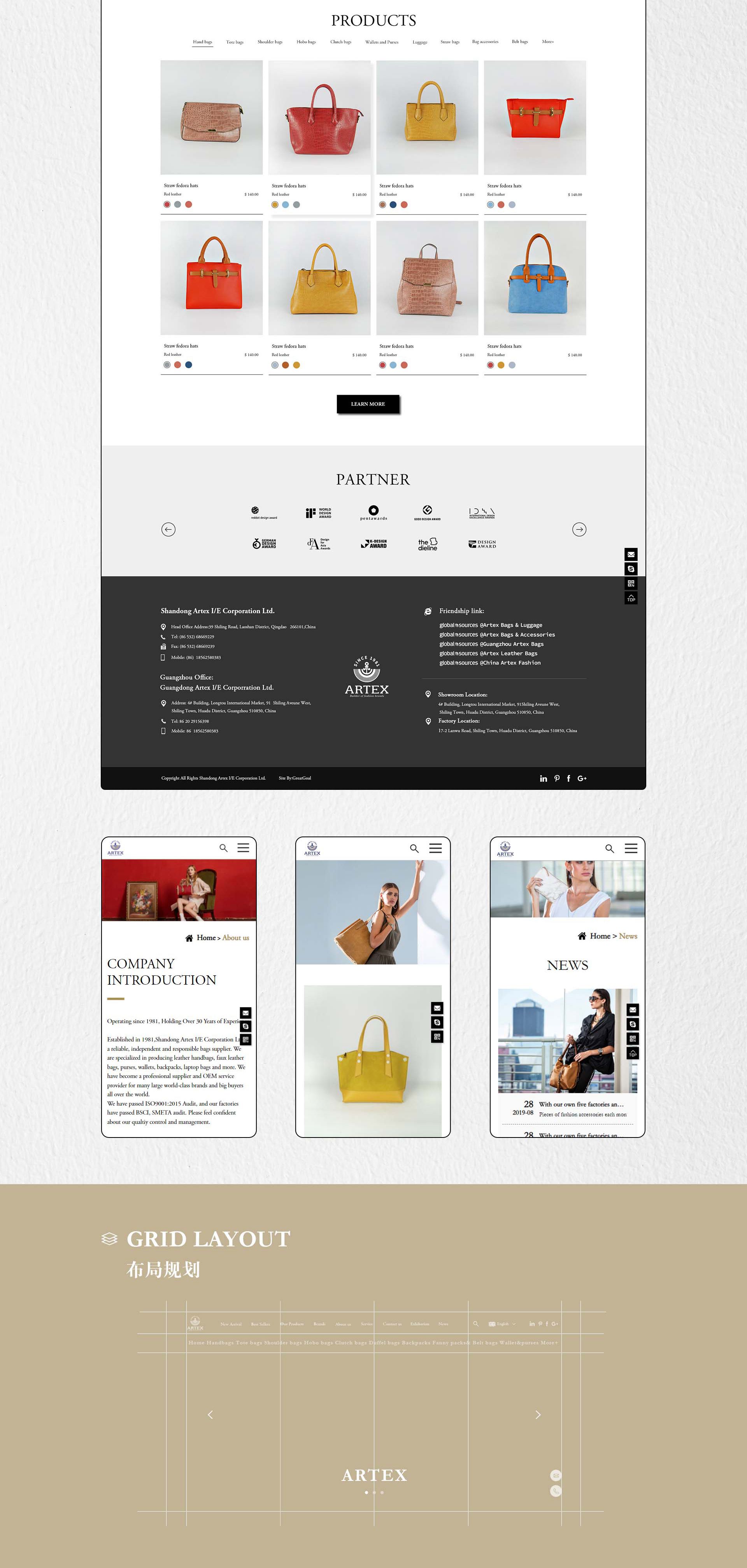 Established in181,Shandong Artex /E Corporation ltd s areliable independent and responsible bags suppier. Whe are specialired in producing leather handbags. fau.leather bags,purses ,weallet, backpacks, laptop bags and more. W e have become a professionalsuppiea and OElM senice provider fo mary large woro-les brnds and bgbuyers all ver the word.We have passed SO9001.2015 Audit and our factories havepassed BSC., SMETA audit.Pleasefee confident about our qualty control and management.